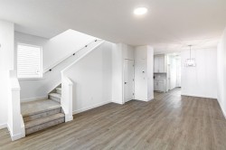 This NEWLY built upgraded semi-detached home in Northeast Community ,Offering 4 BEDROOM and 3 FULL bathrooms, this home includes a MAIN floor bedroom with a full ensuite, ideal for elderly family members, guests, or multigenerational living. All bathrooms are finished with granite countertops and under mount sinks, reflecting quality craftsmanship throughout. This thoughtfully designed home features an open-concept main floor highlighted by a sleek contemporary kitchen with a gas line to the range, ceiling-height cabinetry offering abundant storage, and a convenient pantry. The cozy living room creating the perfect space for relaxing or entertaining. Upstairs, retreat to the spacious primary bedroom featuring a luxurious 5-piece ensuite, designed for comfort and relaxation. Two additional well-sized bedrooms and a dedicated computer/desk nook provide flexibility for family living or work-from-home needs. The full basement with 9-foot ceilings and a separate side entrance is ready for your creative vision—whether additional living space, a recreation area, or a future legal suite (subject to city approvals). Located in Calgary’s desirable new Northeast community, this home offers quick access to Stoney Trail, major roadways, schools, shopping, and all essential amenities. This vacant home is available for quick possession, allowing you to move in without delay.