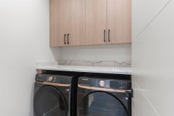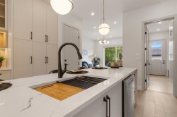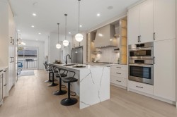 Glenbrook’s Finest! Step into a bright and inviting open-concept main floor where function meets elevated design. At the front of the home, a beautiful formal dining area sets the stage for stylish gatherings and elegant dinner parties. Just beyond, the chef-inspired kitchen boasts a massive waterfall quartz island, double-wide fridge, Bosch cooktop, wall oven, and dishwasher. Adjacent to the island, a thoughtful prep and storage area includes a built-in bar fridge and extended cabinets with convenient pull-out drawers—keeping everything organized and within easy reach for seamless entertaining. Warm neutral tones, built-in ceiling speakers, and timeless finishes create the perfect backdrop for both daily living and hosting with ease. At the rear of the home, a cozy fireplace lounge flows effortlessly onto a sprawling east-facing deck—ideal for enjoying quiet sunny summer mornings or relaxed evenings. Just off the kitchen, a spacious mudroom offers even more custom cabinetry to store your family’s essentials. Upstairs, a versatile loft area offers the perfect spot for a home office or reading nook. The massive primary retreat features heated floors in the spa-inspired ensuite, and a deep soaker tub. Two additional generously sized bedrooms and a stylish four-piece bath complete the upper level. Downstairs, the home offers even more flexibility with a bright and spacious legal basement suite (pending final City of Calgary approval). Featuring two private bedrooms and a large open living area, this level is ideal for extended family, guests, or future rental income. This home isn’t just beautifully finished—it’s a thoughtful investment in style, space, and long-term potential.