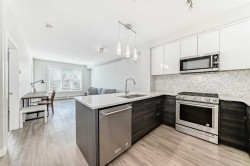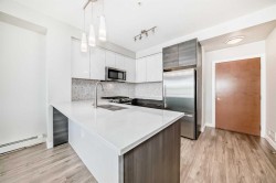 Welcome to this SOUTH-FACING unit across from Mount Royal University within the esteemed community of Currie Barracks. Incredible breathtaking campus tree line view, this unit provides tons of natural light and a more spacious feel with the tall ceilings and large windows. Brick and stucco exteriors provide wonderful architectural curb appeal with a private balcony and spectacularly landscaped courtyard. Designed to maximize the living space, 9' ceilings, master bedroom with walk-in closet, spa-inspired bathroom, porcelain tile, ceramic wall tile on the tub, wash& dryer stacked, top-rated soundproofing wood plank flooring in the entertainment spaces, an European-inspired kitchen, professional stainless steel appliance package with gas stove, marble kitchen back-splash, quartz counter-top, full-size double bowl modern stainless sinks, LED under counter light are the incredible feature. Underground parking has lots of visitor parking spots, a huge bike storage room. Walking distance to the Mount Royal University, 5 mins to Marda Loop, 10 mins driving to downtown. Living at Currie Barracks allows you to live in one of Calgary’s best inner city neighborhoods. Don’t miss the opportunity to make it yours! Call your agent to schedule a private visit today.