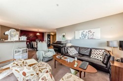 Welcome to this bright and spacious southwest corner unit, perfectly positioned to overlook a large greenspace — offering both privacy and picturesque views. With windows on two sides, this home is filled with natural light throughout the day. Featuring one of the largest floorplans in the building, this condo offers an open-concept layout designed for comfort and functionality. The spacious kitchen includes plenty of cabinet and counter space, along with an eat-up bar that’s perfect for casual dining or entertaining. The adjoining dining area flows seamlessly into a large living room highlighted by a cozy corner gas fireplace — ideal for relaxing evenings.The home offers two generous bedrooms and two full bathrooms, including a primary suite with a walkthrough closet leading to a private 4-piece ensuite. Additional conveniences include in-unit laundry and a titled underground parking stall for year-round comfort.Set in a well-maintained complex and just steps from parks, pathways, and local amenities, this home combines space, sunlight, and convenience — an ideal opportunity for first-time buyers, downsizers, or investors alike.