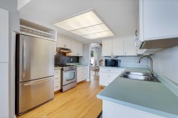 Welcome to this spacious corner-unit townhome in the desirable community of Thorncliffe — a home full of potential and possibilities. Featuring an open-concept layout with a separate dining area and hardwood flooring throughout the main living spaces and bedrooms, this property provides the perfect canvas for your vision. Both bedrooms function as primary suites, each with its own private bathroom, including a jetted tub in the second ensuite — an ideal setup for comfort and privacy.Additional highlights include central A/C for summer comfort, a brand-new hot water tank, and a backyard with no neighbours directly behind. With a double side-by-side attached garage plus an extra stall right in front, parking is never a concern.This townhome offers 2 bedrooms, 3 full baths, and 1 half bath — a rare opportunity for first-time buyers, renovators, or anyone looking to transform a solid home into something truly special. Imagine the possibilities and make this home your own.