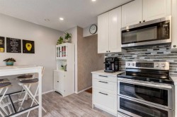 A large portion of this home was renovated in 2023, and it’s a genuinely functional family home in a location that’s hard to beat. You’re minutes to Fish Creek Park, Safeway, Costco, and there’s a daycare just down the street. Add rare RV parking, an EV charger, and an oversized garage, and you’ve got everyday practicality covered. The real highlight is the backyard. With two oversized outdoor spaces, a large upper deck and a separate patio, you get multiple zones for entertaining, kids playing, or quiet evenings outside. There’s also tons of green space, mature trees, and a fully fenced, south facing yard that stays bright and usable all day. Inside, vaulted living room ceilings and big windows bring in great natural light, with a stone surround fireplace anchoring the space. The kitchen features quartz countertops, stainless steel appliances, ample cabinetry, and an eating nook that opens to the deck for easy indoor outdoor flow. Upstairs you’ll find three bedrooms, all a great size for kids and guests. The basement is developed and adds even more flexibility with a fourth bedroom and a large entertainment room, complete with a 110 inch screen and 4K projector (available by separate agreement). The basement also has a roughed in bathroom, offering an opportunity to add a finished bath.