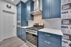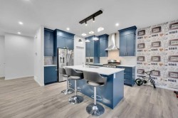 Welcome to this beautifully upgraded, move-in-ready detached home in the vibrant and amenity-rich community of Seton. Offering 1,881 sq. ft. of thoughtfully designed living space, this aggressively priced 3-bedroom, 2.5-bathroom residence stands out with extensive builder upgrades and designer finishes throughout.The main floor features durable luxury vinyl plank flooring, oversized windows that flood the home with natural light, and a modern open-concept layout ideal for both everyday living and entertaining. The stunning kitchen is a true focal point, showcasing striking blue cabinetry, designer quartz countertops, a gas range, stainless steel appliances, and a large central island with bar seating. Tasteful wallpaper accents in the kitchen and upper bonus room add a custom, high-end touch. A convenient powder room completes the main level.Upstairs, a spacious and versatile bonus room provides the perfect space for a family room, home office, or play area. The upper-level laundry room adds everyday convenience and includes built-in shelving for extra functionality. The primary retreat impresses with a massive walk-in closet and a luxurious upgraded 5-piece ensuite featuring quartz countertops, a double vanity, a soaker tub, and a glass-enclosed shower. Two additional well-sized bedrooms and a full 4-piece bathroom complete the upper floor.The unfinished basement offers excellent future development potential or ample storage space and is equipped with a tankless high-efficiency water heater, providing on-demand hot water and improved energy efficiency. A double attached garage adds comfort and practicality.Outside, enjoy the fully fenced backyard with a raised deck—perfect for summer evenings and weekend BBQs.Ideally located just minutes from South Health Campus, the YMCA, Cineplex, schools, shopping, and the future Green Line LRT, this exceptional Seton home offers the perfect blend of comfort, convenience, and elevated design.