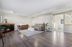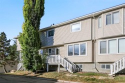 Spacious and great for a young family, young professionals, or someone looking to downsize. Welcome to your bright, contemporary retreat in the heart of highly sought-after Killarney. This 2-storey townhome is designed for the lifestyle of today’s busy professional, offering a blend of modern elegance and everyday comfort, in a great inner city location. Step inside and you’re welcomed by a nice foyer and closet for your everyday items. Head up to the main level and you are greeted by an airy, light-filled living room. Oversized windows flood the open-concept living and dining area with natural light, while a sleek corner gas fireplace sets the mood for cozy evenings or to kick up some heat. The upgraded kitchen features quality maple cabinetry and stainless-steel appliances, ideal for everything from quick weekday meals to hosting dinner with friends. Your private west-facing 23' x 6' deck extends the living space outdoor - perfect for sunset cocktails or a quiet morning coffee. The convenience of main-floor laundry and a two-piece bath makes day-to-day living easy. Upstairs, the primary bedroom is a nice private retreat with a spa-inspired cheater ensuite, complete with a corner soaker tub and separate steam shower. A massive walk-in closet keeps everything organized. The second bedroom is of good size. A versatile den rounds out the upstairs, outfitted with built-in maple cabinetry, offer the flexibility to create a dedicated home office, guest space, or even a future third bedroom as your needs grow. The fully finished double garage with driveway provides rare inner-city secure 2 indoor garage parking spots, with 2 spots on the driveway, for a total of 4 parking spots! Great for you and your friend’s convenience, no having to walk from the visitor parking! With major shopping, trendy cafes, and downtown Calgary just minutes away, this home puts you right where you want to be - close to work, play, and everything in between. Meticulously maintained and thoughtfully designed, this Killarney townhome is the perfect match for someone ready to embrace the quiet inner city urban lifestyle without compromising on space, style, or location.