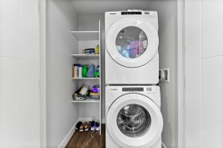 Priced to sell! First 3 months of condo fees covered by seller! Calling all dog lovers!!! This is the one you’ve been waiting for. Overlooking the private residents’ dog park, this stunning 2-bed, 2 bath luxury condo in East Village offers a rare blend of sophistication and lifestyle. Perched on the 4th floor, the unit still has amazing views to the north! This 1,100+ sq. ft. residence is incredibly well built with high-end appliances (with longer then normal warranties!) and secondary fail systems on all water systems and a secondary fire safety system on the dryer for ultimate peace of mind. Indulge in resort-style amenities including a pool, hot tub, sauna, fitness centre, elegant common areas(perfect for date nights or group hangouts), and the exclusive dog park just steps from your balcony. Complete with a transferable new home warranty and offered as the best-priced 2 bed, 2-bath unit in the building, this home defines elevated urban living in one of Calgary’s most dynamic communities.
