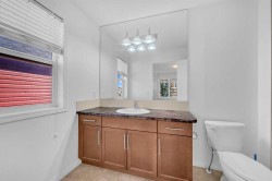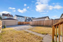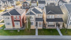 This bright two-story has great curb appeal, a sunny fenced backyard, and a huge deck for BBQs and summer evenings. A handy front den/office sits right off the foyer—perfect for working from home. The main floor offers an open layout with hardwood floors, big windows, and a spacious kitchen with long granite counters, an oversized island with pendant lighting, tile backsplash, and stainless steel appliances, all flowing to the dining and living areas for everyday living and entertaining. Upstairs you’ll find a comfortable primary bedroom with walk-in closet and full ensuite, two additional bedrooms, a second full bath, and convenient upper-level laundry with Samsung front-load machines. The full basement with large windows and a bathroom rough-in is ready for your ideas. Stone accents and a covered front entry finish the look. Location is a win: steps to a playground, shopping plaza, bus stop, and the future school site. Quick possession available—come see it today.