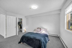 Welcome to this charming 2-bedroom, 2-bathroom corner unit condo located in the peaceful Panorama Hills community. This spacious ground-floor unit offers 974 square feet of comfortable living space and features a private southwest-facing balcony entrance. Step inside to discover a bright, open-concept layout enhanced by fresh paint and new carpeting throughout.Thoughtfully designed, the bedrooms are positioned on opposite sides of the unit—ideal for small families or investors seeking rental flexibility. The generous primary bedroom easily accommodates a king-size bed and includes a private ensuite and walk-in closet for added convenience.An ideal opportunity for first-time buyers, downsizers, or investors, don’t miss out on affordable homeownership in a prime location!