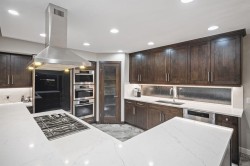 Set quietly against the untouched beauty of Fish Creek Park, this estate offers something increasingly rare in the city: space, privacy, and the freedom to finish a remarkable home in your own vision. With 4 beds, 3.5 bath and over 5,650 sq. ft. of thoughtfully updated living space, the heavy lifting has already been done. The kitchen is designed for gathering—solid maple cabinetry, updated countertops, and professional-grade appliances including a Wolf gas cooktop, Sub-Zero fridge, and Miele steam, convection, and microwave ovens. It’s timeless and functional. The dining room sits just beyond, ideal for both everyday meals and hosting, while the living room is anchored by a double-sided wood-burning fireplace with gas ignition that is shared exclusively with the adjoining office/den—creating a cozy, light-filled space for both relaxing and working with the park as your backdrop.Upstairs, the primary suite feels calm and private, framed by treetop views and direct access to a newly built balcony—an ideal place for slow mornings and quiet evenings. Bathrooms throughout the home have been redesigned with premium materials, custom vanities, updated fixtures and lighting, and Turkish marble tile. Even the laundry room has been refreshed with custom cabinetry, stone counters, a sink, and a convenient laundry chute.The walkout lower level offers flexibility rather than definition. A custom bar finished with Spanish tile and granite countertops sets the tone for entertaining, while open spaces invite whatever comes next—gym, games room, studio, or guest retreat.And then there’s the backyard.West-facing and backing directly onto Fish Creek Park, it feels like a summer fairytale. Long evenings by the pool, laughter drifting through the trees, golden light filtering through the branches. The heated pool has been upgraded and is ready for warm days and barefoot nights. DuraDeck balconies with glass railings extend your living space outdoors, while city-maintained pathways just beyond your gate invite year-round walks, bike rides, and moments of calm.Behind the scenes, key systems have been upgraded, including a serviced commercial-grade boiler, new air conditioning, updated plumbing, refreshed lighting, and epoxy-coated garage and mechanical rooms. The structure is strong, the setting unmatched. Step into one of Calgary’s most coveted natural backdrops and shape the final details around your own lifestyle.A place where summers feel endless, mornings are quieter, and the park becomes part of everyday life.