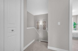 Welcome home to this stunning townhouse located in the highly sought-after lake community of Auburn Bay, offering low condo fees and an unbeatable lifestyle! As you step inside, you’re welcomed by soaring vaulted ceilings and custom California shutters that add elegance and privacy throughout the home. The entryway and bathroom feature beautiful slate flooring, adding a touch of natural style and durability. The modern kitchen is a chef’s dream, complete with granite countertops, stainless steel appliances, a brand new dishwasher, and ample cabinetry for generous storage. A few steps up, you’ll find a convenient half bath, leading to the upper level that boasts two spacious primary bedroom suites, each with large closets and their own 4-piece en-suite with sleek quartz vanity tops, plus a laundry closet with full-size washer and dryer for added convenience. The lower level includes a welcoming front entry with a coat closet and direct access to the double attached garage, offering room for a full-size vehicle and plenty of extra storage. This home also features two private outdoor living spaces, an upper deck. Perfect for summer entertaining, and a lower concrete patio is ideal for relaxing with a BBQ gas line. Conveniently located within walking distance to shopping, schools, parks, transit, and the lake, this thoughtfully upgraded home is ready for you to move in and enjoy. Welcome to your new home in Auburn Bay!