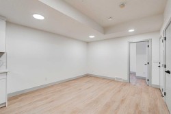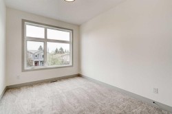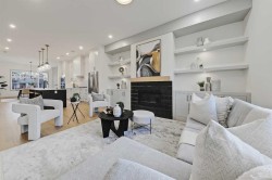 This modern semi-detached home is a stunning blend of thoughtful design and functionality, perfect for anyone looking to elevate their living experience! Located in the heart of Bowness, it offers the perfect mix of urban convenience and peaceful surroundings. Outside, this home has serious curb appeal, w/ a sleek black and white Smartboard exterior that pairs beautifully w/ carefully designed landscaping, and has a 10/10 location next to the park! Out back, there’s a private patio ready for summer BBQs, complete w/ a gas hookup to make entertaining a breeze. Inside, the space is bright and airy w/ 10-ft ceilings on the main floor. The kitchen is a dream for anyone who loves to cook or entertain, w/ custom two-tone shaker cabinets, quartz countertops, and a massive island that acts as both a centrepiece and functional workspace. High-end stainless-steel appliances, including a gas cooktop and built-in oven-microwave combo, make it as practical as it is beautiful, along w/ the large walk-in pantry for all your storage needs. Enjoy everyday meals and family get-togethers in the dedicated dining room w/ a designer chandelier and stunning feature wall, then spread out into the open-concept living room, which features a stunning gas fireplace w/ crystal glass details. Rounding off the main floor is a lovely custom mudroom w/ a built-in bench and private powder room perfect for guests and everyday use. Upstairs, the primary suite is an absolute sanctuary, w/ oversized windows, an extra-large walk-in closet, and a 5-pc ensuite that acts as your own private spa, w/ a freestanding soaker tub, a walk-in shower w/ rain showerhead, dual vanity, and a full-height mirror w/ inset lighting that adds a touch of luxury. Two additional bedrooms on this floor are spacious and bright, w/ quick access to the main bathroom and a convenient upper-level laundry room. The basement is fully finished and includes a LEGAL SUITE w/ its own private entrance. It’s a fantastic option for generating rental income, hosting long-term guests, or even creating a separate space for family members. The suite features a full kitchen, a cozy living area, two bedrooms, and a full bathroom—all finished w/ durable luxury vinyl plank flooring for a sleek and modern look. Throughout the home, you’ll find matte black finishes on all hardware and stylish LED pot lights. It’s also ready for easy upgrades, w/ rough-ins for air conditioning already in place. And the location? Couldn’t be better! You’re next to a park with a skating rink, minutes from the beautiful trails and lagoon at Bowness Park, a local favourite for outdoor activities. The neighbourhood is packed w/ amenities, including charming cafes, boutique shops, and more. For families, there are fantastic schools and playgrounds nearby, including Bowness High School, and commuting is simple w/ quick access to Stoney Trail and 16th Ave! Call today to view!
