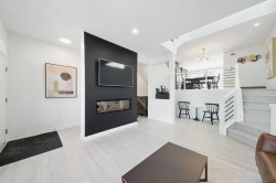 Former Jayman Show Home | Open to Above Floor Plan | Unique Designer Masterpiece | Solar Panels & AC. Welcome to this exceptional 4-level split home in the thriving Northwest community of Glacier Ridge. A former Jayman BUILT show home, this residence is a true standout—showcasing a thoughtful blend of designer finishes, energy-efficient features, and a rare split-level layout that seamlessly balances style and functionality. From the moment you arrive, you’ll be impressed by the professionally landscaped, maintenance-free front yard, offering outstanding curb appeal. Step inside to a bright and inviting main living area, featuring a striking feature fireplace, expansive windows, and sleek LVP flooring that flows beautifully throughout the home. On the second level, discover a chef-inspired gourmet kitchen, boasting ample counter space, premium stainless steel appliances, upgraded cabinetry, and designer lighting—all anchored by a spacious dining area ideal for gatherings and entertaining. Naturally beautiful skylights and a split staircase take you to the upper level where you will discover two spacious master suites, each with its own private ensuite, offering privacy and comfort for family or guests. A central laundry room adds everyday convenience. The lower level offers soaring 10’+ ceilings, creating an open and airy recreation room, a third bedroom with walk-in closet, and a full bathroom—ideal for guests, teens, or extended family. Additional highlights include: Solar panels for reduced utility costs, upgraded tankless hot water system, AC, and energy-efficient features throughout. This home has been thoughtfully designed from top to bottom, showcasing the quality craftsmanship. Whether you’re upsizing, investing, or looking for a distinctive layout that stands apart—this is your opportunity to own a show-stopping home in a growing community.