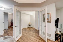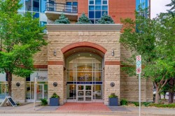 Sophisticated 1 bedroom + a den, 5th floor unit with downtown and river views. Ideally located in the heart of Eau Claire just one block from the Peace Bridge, Prince’s Island and the Bow River. This executive unit is stylishly designed with timeless finishes, central air conditioning and an open floor plan creating an airy ambience. Inspiring culinary exploration, the kitchen is the true hub of the home featuring granite countertops, stainless steel appliances, full-height cabinets and a full-sized centre island with a breakfast bar for casual eats. Gather over large meals or host guests in the adjacent dining room with unobstructed sightlines ensuring easy connectivity. Sit back and relax in front of the warm gas fireplace in the inviting living room or enjoy peaceful coffees on the balcony with east exposure for early morning sun. Downtown and river views provide the breathtaking backdrop to your summer barbeques and outdoor unwinding time. French doors lead to the den, perfect for guests or a home office. Retreat at the end of the day to the calming primary complete with access to the stylish 4-piece bathroom. Adding to your comfort and convenience are in-suite laundry, titled parking, a separate storage locker, a car wash and a full-time concierge. Truly an exceptional condo in an amenity-rich building that is an outdoor lover’s dream - walk or bike downtown, stroll along the river or visit the many shops, cafes and restaurants that this vibrant community has to offer. Close to the future green line and the new redevelopment site planned for the old market area. This outstanding location has it all! Condo fee includes ALL UTILITIES (except internet/TV).