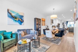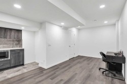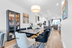 Welcome to your dream home in Glacier Ridge! This beautiful duplex with a finished basement and detached double garage offers over 2,200 sq. ft. of developed living space in one of NW Calgary’s most desirable communities. Step inside and be greeted by 9’ ceilings, 8’ doors, and luxury vinyl plank flooring throughout the main level. The open-concept layout includes a versatile flex space—perfect for a reading nook, home office, or small formal living area—plus a spacious dining nook, stunning kitchen, and inviting great room. The chef-inspired kitchen features quartz countertops, white soft-close cabinetry, a bold black island, ample pot lighting, and upgraded high-end appliances. The great room is ideal for entertaining family and friends, with direct access to the completed deck with privacy screen via the convenient mudroom. Upstairs, you’ll find three bedrooms, two bathrooms, and a dedicated laundry room with built-in linen storage. The primary suite includes a walk-in closet and a private ensuite with a walk-in shower, while both additional bedrooms also feature walk-in closets. The professionally finished basement offers even more living space, including a large rec room, wet bar, fourth bedroom, and full 4-piece bath—perfect for guests or family movie nights. Located close to shopping, restaurants, Costco, and Symons Valley Ranch Market, this home combines luxury, functionality, and location.