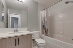 Welcome to 55 Sage Bluff Heights NW, a thoughtfully designed semi-detached home quietly nestled on a desirable street in the heart of Sage Hill. Enter directly from the front-attached garage into a bright, open-concept main floor that’s perfectly suited for both daily living and entertaining. A defined dining area leads seamlessly into the spacious kitchen, featuring a large central island, ample cabinetry and counter space, and a convenient pantry. The inviting living room is anchored by a cozy fireplace and opens onto a private backyard retreat, complete with an elevated deck and a lower brick patio with gazebo—an ideal setting for relaxing summer evenings.Just a few steps up, the primary bedroom is set apart for added privacy and showcases soaring ceilings, oversized windows, a generous walk-in closet, and a 4-piece ensuite. The upper level continues to impress with a central bonus room, convenient laundry with additional crawl space storage, two well-sized bedrooms, and another full 4-piece bathroom. The lower level offers excellent potential for future development, already equipped with a bathroom rough-in and a large egress window.Additional features include central air conditioning, completed exterior hail repairs, central vacuum with attachments, and a new patio and gazebo. Located in the family-friendly community of Sage Hill, this home delivers a perfect blend of comfort, functionality, and style. Book your showing today and see it for yourself.
