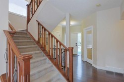 Incredible value here in this fully finished two storey walkout in one of Northwest Calgary’s most desirable communities…welcome to Tuscany! Located in Tuscany Hillside Estates, this wonderful home enjoys a total of 4 bedrooms + den, granite counters & central air, oversized 2 car garage & is walking distance to a playground & schools. Available for quick possession, you’ll love the sun-drenched & open concept flow of the main floor which features 9ft ceilings & hardwood floors, spacious living room with fireplace & large windows, bright & airy dining room with access to the oversized balcony (which is wired for outdoor speakers) & cherrywood kitchen with walkthrough pantry, tile backsplash & Samsung stainless steel appliances. Total of 3 bedrooms & 2 full bathrooms on the air-conditioned 2nd floor including the owners’ retreat with big walk-in closet & ensuite with double vanities, separate shower & corner soaker tub. Over the garage is an incredible bonus room with soaring vaulted ceilings…the perfect space for your media room. The walkout level – with upgraded laminate floors with cork underlay, is beautifully finished with a 4th bedroom, rec room with granite-topped wet bar & wood-burning fireplace plus bathroom with heated floors & steam shower complete with aromatherapy bundle. Main floor also has a dedicated home office & laundry/mudroom with extensive built-ins. Additional extras include built-in ceiling speakers, oversized garage with sink & aggregate driveway, rough-in for hot tub on the walkout patio (complete with junction box with independent circuit), pre-wired for satellite, separate connection for hot water on the outside tap, 2 year old hot water tank & if you prefer a gas stove, there is a gas line in the furnace room that connects to the kitchen. All 4 of Tuscany’s schools are just minutes away…walking distance to Tuscany School & St. Basil Elementary/Junior High, & short drive to Eric Harvie School & Twelve Mile Coulee School. Prime location close to Tuscany Club & Market, neighbourhood greenspaces & the Tuscany LRT, & quick access to Stoney/Crowchild Trails to take you to Crowfoot Centre, University of Calgary & hospitals, major retail centers & downtown.