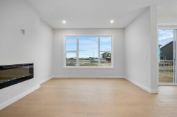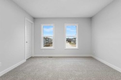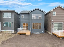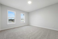 Located in the scenic southwest community of Pine Creek, 56 Creekstone Grove SW combines elegant design, quality craftsmanship, and thoughtful functionality in a home built for modern family living. Perfectly positioned near parks, pathways, and a serene community wetland, this residence offers a peaceful natural setting without sacrificing proximity to city amenities.The main floor impresses with its open-concept layout and spacious, extended kitchen, ideal for both everyday living and entertaining. A true chef’s delight, the kitchen features quartz countertops throughout, 42” upper cabinetry, and a generous kitchen island that provides ample workspace. The electric fireplace in the great room serves as a cozy focal point, while pot lights add brightness and warmth to the living and bonus areas. A combination of hardwood, tile, and carpet flooring creates a beautiful balance of comfort and style across the home.Upstairs, the thoughtful floor plan includes a central bonus room, perfect for a media space or family retreat. The primary bedroom is a private sanctuary featuring a 5-piece ensuite with dual sinks, a soaker tub, a glass-enclosed shower, and a large walk-in closet. Each secondary bedroom also includes its own walk-in closet, providing exceptional storage and organization for every member of the family.A separate side entrance leads to a lower level built on a 9’ foundation, complete with basement rough-ins—a blank canvas ready for future development. Outdoor living is equally appealing with a rear deck featuring stairs to grade and a gas line, ideal for barbecues, family gatherings, and enjoying Calgary’s summer evenings.Set in a location that embraces nature and community while offering modern comfort and versatility, 56 Creekstone Grove SW delivers exceptional value for families, professionals, or investors alike. With its elevated finishes, smart design, and a setting that inspires a relaxed lifestyle, this home truly stands out in one of Calgary’s most desirable new neighborhoods. One or more photo(s) was virtually staged to help viewers visualize the home’s appearance once construction is fully completed. Contact the showhome today for a private showing!