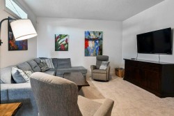 *JUST LISTED! OPEN HOUSE SUN. MAR. 1st. 1:00 p.m. - 2:30 p.m.* Nestled in a private and peaceful pocket of Discovery Ridge, this beautifully refreshed Villa Bungalow offers a marvelous, maintenance-free lifestyle. As the coveted end unit facing south, the home is drenched in natural light and enjoys one of the community’s premier positions—siding onto a tranquil park and seating area that enhances both privacy and serenity.Step inside to a bright, open floor plan with 9 ft ceilings and fresh paint & newer flooring throughout. The inviting living room is truly the heart of the home, showcasing picturesque treed views and a cozy fireplace that sets the perfect tone for relaxation. The adjoining kitchen features abundant granite counter space, stainless steel appliances, a pantry, and a casual eating nook—ideal for everyday living. For gatherings of friends and family, the formal dining room offers a warm and elegant setting.Thoughtfully separated sleeping quarters include a wonderfully spacious primary bedroom complete with a generous walk-in closet and a well-appointed ensuite featuring a soaker tub and separate shower. A large secondary bedroom provides the perfect space for guests or grandchildren, while a full additional bathroom completes the main level.The lower level extends your living space with a welcoming family room, a full bath, a guest bedroom or office, and convenient laundry. Both the front and rear balconies offer inviting outdoor retreats—perfect for morning coffee, evening grilling, or simply enjoying the peaceful surroundings.The location is truly outstanding. You’re mere steps from pathways ideal for biking, leisurely strolls, and exploring the breathtaking Griffith Woods Park. Discovery Woods Villas is just minutes from shops, restaurants, and the many amenities of Westhills and Aspen, with quick access to major routes and all areas of the city. This is a very well-managed, beautifully maintained complex where pride of ownership is evident.