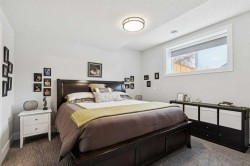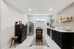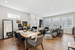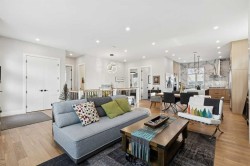 This modern masterpiece has been completely transformed from the foundation up, combining exceptional craftsmanship, custom finishes, and luxurious details throughout. Spanning over 2,900 sq. ft. of thoughtfully designed living space across two levels, with four elegantly appointed bedrooms, this custom bungalow epitomizes refined luxury in the highly sought-after family neighbourhood of Haysboro. Set on an oversized 50’ x 140’ lot on one of the community’s most serene, tree-lined streets, the property includes a triple garage with a fully serviced 839+ sq. ft. workshop/studio above, offering extraordinary potential for a guest house, home office, gym or private studio. The expansive grounds provide privacy, mature landscaping, and generous outdoor entertaining space, rare in inner-city living. Extensive structural enhancements include an extended and raised foundation, creating soaring ceiling heights and expanded square footage on both levels. The sun-filled main floor boasts 10-foot ceilings, walnut hardwood floors, and a sophisticated open-concept layout designed for both everyday living and elegant entertaining. The gourmet designer kitchen features built-in KitchenAid appliances, an oversized 48” refrigerator, full-height porcelain slab backsplash, premium lighting, and flows seamlessly into the living area, anchored by a 42” Napoleon gas fireplace. The main level includes two luxurious bedrooms, each with its own private ensuite, including a serene primary retreat with a spa-inspired 6-piece ensuite, premium fixtures, and a discreet hidden entry to the walk-in closet. A stylish powder room completes the main floor. The fully developed lower level continues the elevated design with 9-foot ceilings, a generous recreation and entertaining area with custom wet bar, and two additional large bedrooms connected by a Jack-and-Jill 5-piece bathroom, ideal for a growing family or private guest quarters. Outdoors, the private, professionally landscaped backyard offers a tranquil oasis, perfect for relaxing or entertaining. Ideally located in Haysboro, the home is steps from parks, playgrounds, walking paths, and green spaces, and minutes from top-rated schools, Chinook Centre, Rockyview Hospital, and major transit routes including LRT access. Quick connections to downtown and major roadways make commuting effortless, while the neighbourhood’s mature trees, strong community spirit, and family-friendly atmosphere enhance long-term desirability. A rare, one-of-a-kind offering, defined by meticulous attention to detail, high-end finishes, sophisticated architectural planning, and an exceptional location. Book your private viewing today!