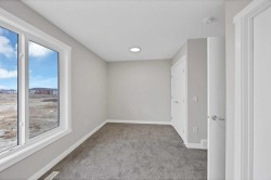 ?Welcome to this elegantly designed three-storey townhouse that blends modern style with functional living. This thoughtfully planned home offers three spacious bedrooms, each with its own private ensuite—making it ideal for families or multi-generational living. The entry level features a welcoming foyer and a versatile bedroom that can serve as a comfortable guest suite or a convenient home office. The main floor is bright and inviting, filled with natural light streaming through large windows that enhance the open-concept layout. The contemporary kitchen is equipped with stainless steel appliances, sleek lighting, and a practical breakfast bar, perfect for casual dining or entertaining guests. A cozy balcony extends the living space outdoors, while a conveniently located powder room adds to the home’s comfort and functionality. Upstairs, two generous primary bedrooms each offer private ensuites, with one suite featuring a spacious walk-in closet and a dual vanity that elevates the sense of luxury. A stacked laundry closet on this level adds everyday convenience. Additional highlights include a single attached garage, low condo fees, future nearby green space, and ample visitor parking. With easy access to Stoney Trail and nearby amenities, this home combines modern comfort, versatile design, and a highly desirable location—ready for you to move in and enjoy.