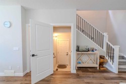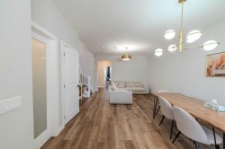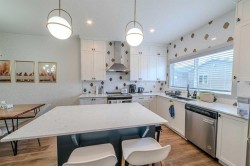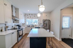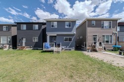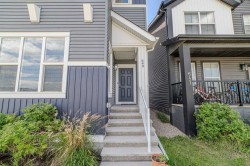 Welcome to this beautifully upgraded 5 bedroom, 4 bathroom home in the vibrant NE Calgary community of Cornerstone. Offering nearly 2,500 SQFT of total developed living space, this former builder’s show home is loaded with high-end upgrades and thoughtful features throughout. Step inside to discover 9ft ceilings, elegant luxury vinyl plank flooring, and a bright, open-concept layout. The chef’s kitchen is a standout, showcasing extended ceiling-height cabinets, quartz countertops, full tile backsplash, an executive hood fan, and upgraded designer lighting which is perfect for everyday living and entertaining friends or family. Enjoy unique wallpaper accent walls, elegant lighting throughout spacious bedrooms, and 4 full bathrooms, including one on the main level. The illegal basement suite offers a private side entrance, full kitchen , separate laundry and a generous living space, perfectly suited for extended family or potential rental income. Outside, you’ll love the large backyard, perfect for summer gatherings, and a rear 2-car parking pad with plenty of room to build a future garage. The home is ideally situated directly across from a large green space, with a brand new school coming soon, providing additional convenience for families. Recent major updates (2024) include: New Roof, New Rear Siding and New Window Trim This is a rare opportunity to own a turn-key, fully loaded home in one of Calgary’s fastest-growing communities. Close to parks, schools, shopping, transit. Book your private showing today, show home caliber homes like this don’t come up often or last long!