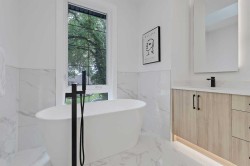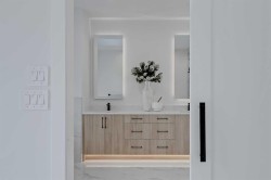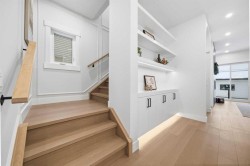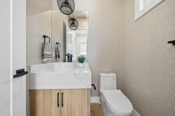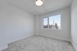 Modern luxury meets timeless charm in this beautifully crafted semi-detached home in the heart of Mount Pleasant. Offering over 1,900 sq. ft. of thoughtfully designed living space above grade, this 3-bedroom, 2.5-bathroom residence blends high-end finishings with family-friendly function and a legal secondary suite (pending final inspection) with 2 bedrooms, 1 bathroom, over 800 sq. ft. of living space, all just steps from Confederation Park and the vibrant 4th Street corridor.The main floor welcomes you with soaring 10’ ceilings, engineered hardwood floors, and custom millwork throughout. The open-concept living and dining area is anchored by a sleek gas fireplace with built-in shelving and large sliding glass doors that open to a bright facing backyard, perfect for indoor-outdoor living.The chef’s kitchen is a showstopper, complete with premium stainless steel appliances, a custom range hood, quartz countertops, a central island with seating, and full-height cabinetry.A pocket office with a built-in desk and shelving is located near the front and at the rear, a mudroom with built-in storage keep day-to-day life organized and clutter-free.Upstairs, the primary retreat impresses with vaulted ceilings, a large walk-in closet, and a spa-like ensuite with heated tile floors, dual vanities, a glass shower, freestanding soaker tub, and private water closet. Two additional bedrooms with custom closets, a laundry room with sink and cabinetry complete the second floor.This home also features a 2-bedroom legal secondary suite (pending final inspection), offering its own private side entrance for added privacy and independence. Designed with the same elevated finishings as the main level, the suite includes a stylish full kitchen, open-concept living and dining area, a sleek 4-piece bathroom, and dedicated laundry with a built-in sink. Whether you're accommodating extended family, welcoming long-term guests, or exploring rental opportunities, this flexible space adds both function and future value.Located on a quiet, tree-lined street in one of Calgary’s most sought-after communities, you’re just steps from parks, walking paths, top-rated schools, and popular local spots like Velvet Café, 4th Spot Kitchen & Bar, and Milk Ice Cream. Quick access to 16th Ave, 14th Street, and transit makes commuting a breeze.This is your opportunity to own a brand new, upscale home in a neighbourhood that truly has it all.