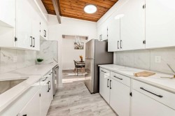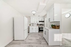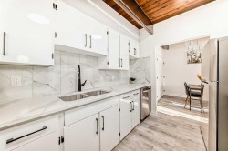 I am excited to share a new listing for a beautifully renovated half-duplex with LEGAL basement suite located in the heart of Bowness, situated just two blocks from the new Superstore and Bow River Shopping Center. This property represents an exceptional opportunity for both first-time buyers and investors.The home features a sunny, front-facing orientation and has been extensively updated. The main floor welcomes you with new luxury vinyl plank flooring and a bright living room that opens onto a front-facing balcony. The kitchen has been completely modernized with quartz countertops, soft-close cabinetry, and new appliances. This level also includes two large bedrooms, a renovated bathroom, and a dedicated laundry area. Unique architectural details, such as beautiful vaulted wood ceilings, add character throughout the space.The lower level contains a fully finished two-bedroom LEGAL basement suite, perfect for generating rental income. This suite features an open-concept living area flooded with natural light from large south-facing windows, along with its own dedicated laundry and an updated bathroom.Key mechanical and structural updates include newer windows, a furnace installed within the last few years, and a roof that is approximately 7-8 years old. All interior finishes, including flooring, doors, and baseboards, are brand new.Excellent location within Bowness as you are walking distance to Bowness Mainstreet, all shopping amenities including the new Farmer's Market, public transportation, plus great access to Downtown, West to the Mountains, Bowness and Shouldice Parks, Canada Olympic park and near major road arteries like 16th Ave and Stoney Trail. Please call your favorite agent to schedule a viewing or if you require any additional information regarding this property.