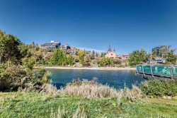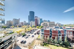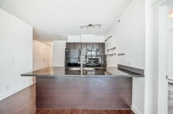 Welcome to Riverfront Pointe! This bright 7th floor west corner suite offers 2 bedrooms, 2 bathrooms + a flex/office area with unobstructed views of the Bow River and Downtown skyline. The open-concept layout features granite counters, designer tile backsplash, black appliances, eating bar, laminate flooring, and floor-to-ceiling windows that flood the home with natural light. The primary bedroom includes a 4-piece ensuite, while the second bedroom and full bath add flexibility for guests or a home office. In-suite laundry adds everyday conveniencBuilding amenities include a fitness centre, landscaped courtyard, concierge service, keyless entry, bike storage, and a titled underground parking stall located just steps from the elevator. Enjoy the ultimate urban lifestyle—walk to the Calgary Zoo in 10 minutes, City Hall LRT in 2 blocks. Enjoy being steps away from river pathways, parks, Chinatown, Eau Claire, and the best of downtown dining and entertainment.An excellent investment opportunity—previous tenant paid $2,500/month. Pet-friendly (with board approval).