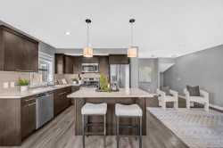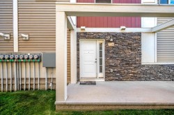 Welcome to this beautifully maintained CORNER unit offering exceptional space and convenience in Redstone. Featuring 4 spacious bedrooms and 2.5 bathrooms, this home is perfect for families or anyone seeking extra room to grow. The bright, open layout is FRESHLY PAINTED and PROFESSIONALLY CLEANED, providing a true move-in ready experience. The main floor consists of a large foyer with access to the garage and bedroom. The second floor features a bright, open layout living area featuring a beautiful kitchen with upgraded stainless steel appliances and island. The open layout of the kitchen, sizeable centre island, dining room and living room make it perfect for entertaining. The huge patio area easily fits a small patio set to sit and relax with a natural gas line hook up ready for your bbq. The upper floor features a huge master bedroom with a VAULTED CEILINGS, walk-in closet and attached ensuite. There are 2 more spacious bedrooms and a full bathroom on the top floor. Enjoy the convenience of an attached single garage plus full driveway, giving you ample parking and storage. With its corner location, this home also benefits from extra windows and natural light throughout. Located in a very quiet location across a park in a family oriented community of Redstone! This home is close to all amenities like bus stop, stores, mall, airport, bus stop, groceries and easy access to Stoney Trail and Deerfoot. Steps away from a new shopping plaza opening on Redstone Blvd!