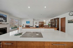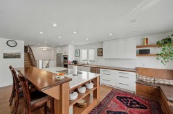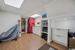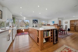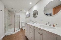 This extensively renovated 1,585 sq. ft. above grade family bungalow offers exceptional upgrades throughout. The main floor has an open layout with a large kitchen and dining space, a striking feature fireplace, and abundant natural light. Attention to detail is evident throughout, including mahogany wood accents, quartz countertops, and custom cabinets. There are two large bedrooms on the main floor, the primary having a luxurious ensuite bathroom, and direct access to the deck. The deck benefits from south-facing exposure year-round; a remotely powered awning adds convenience and shade. The home also features a spacious raised family room with vaulted ceilings and a high-efficiency wood burning fireplace, providing both indoor comfort and a covered outdoor living area with an additional exterior fireplace. The lower level contains a spacious recreation room, an additional fireplace, two more bedrooms, storage, laundry facilities, and a four-piece bath. All appliances, including a lower-level fridge and microwave, are included. All mechanical systems are updated, including a furnace (2025), water tank (2014), and central air conditioning (2022) for summer comfort. The property also includes a newer oversized double garage (2021) that is heated, insulated, drywalled, and features an 8 ft door height and high ceilings. There is so much living space in this home, a total of 2,492 sq. ft., including the basement level. With the generous yard, deck, covered patio, and the oversized garage, you can have it all. Located on a quiet residential road in the heart of Silver Springs, this property is just steps from the ravine and two elementary schools. The community provides access to schools, shopping, an outdoor pool, hiking trails, scenic views, the Bow River, public transit, and major roadways. Viewing is highly recommended; please refer to the accompanying photos for further details.