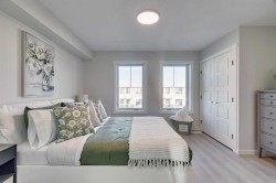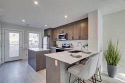Welcome to the Ambrosia by Avalon Master Builder, a stunning 2-bedroom, 2.5-bathroom two-story townhome designed for modern living. Located in the picturesque Crimson Ridge, this home offers scenic views of the Bow Valley River, downtown and Canada Olympic Park. This home features open-concept living with a spacious kitchen island, perfect for entertaining, and Luxury Vinyl Plank (LVP) flooring throughout the main level and bathrooms. Each bedroom boasts its own private ensuite for added comfort and convenience, while upper-floor laundry provides maximum functionality. Built to optimal energy efficiency, it features superior insulation, triple-pane windows, and advanced construction techniques that keep energy costs low and comfort high. Every square foot of this home is thoughtfully designed to maximize functionality, energy efficiency, and style. Additionally, it is right next to a beautiful golf course, making it an ideal spot for golf enthusiasts. Photos are representative.