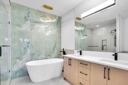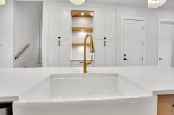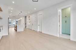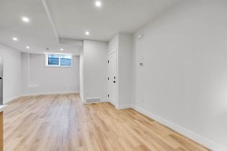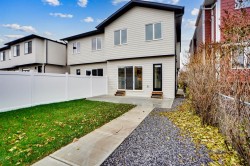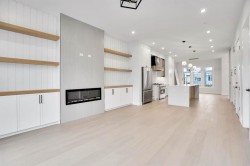 Brand-New Luxury Infill in Bowness | Legal 2-Bedroom Suite | South Backyard Luxury + Income Potential + Lifestyle – All in One Home. Move right in to this stunning, never-lived-in luxury infill featuring a bright open floor plan, designer finishes, and a legal 2-bedroom basement suite for rental income or multigenerational living. Enjoy a chef-inspired kitchen with quartz countertops, warm wood accents, premium stainless steel appliances, and a show-stopping waterfall island. The living room boasts a modern fireplace with custom built-ins and opens to a sunny south-facing backyard – perfect for entertaining. Upstairs, a spa-like primary suite with walk-in closet, dual sinks, freestanding tub, and glass custom shower, plus two additional bedrooms and full bath. The bright basement suite offers its own kitchen, laundry, private entrance, and full bath – ideal for guests or tenants. Prime location near Bow River pathways, Bowmont Park, Market Mall, Winsport, schools, and quick highway access to the mountains.