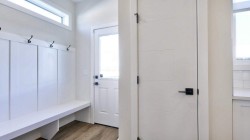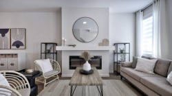 OPEN HOUSE SATURDAY FEB 28th and SUNDAY MARCH 1st FROM 12:30 PM - 4:30 PM *** LUXURIOUS STREET TOWN * NO CONDO FEES * DOUBLE CAR GARAGE * SIDE ENTRY DOOR * FULLY LANDSCAPED * DECK * WINDOW COVERINGS * UPGRADED FINISHINGS * Wonderful home located within a 5 minute walk to the Bow River where nature is right at your back door! As you enter this "open concept floor plan", the first features you'll see are the gorgeous wide plank floors, the 9 foot high ceilings, a cozy fireplace and elegant metal railing on the staircase. The spacious living room allows for casual family gatherings or a fun movie night. The dining room is located in the middle of the home and has the capacity to fit a large dining room table. The kitchen is at the REAR of the home and has an island with eating bar, a pantry, quartz countertops, Slim Line lighting and pendant lighting. The mudroom has a bench and hooks for jackets. The upper floor has a huge primary bedroom that has a walk in closet and a 4 piece ensuite bathroom which includes a 5 ft. wide TILED shower and 2 sinks. The 2 spare bedrooms are at the back of the home where you'll also find a 4 piece bathroom. The laundry room is on the upper floor as well. There's also a Tech space for a desk at the top of the stairs. The basement is unfinished but has plumbing rough-ins for a bathroom, laundry facilities and a bar sink. As you enter the backyard from the mudroom a 100 square foot deck is there to get your future backyard plans started. We have provided a rough-in gas line for your BBQ here. To get you out of Calgary's long winters, a double car garage is waiting for you! Grass will be provided for both the front yard and the back. Energy saving components are triple pane windows, a 96% high efficient furnace, LED lighting, a high end Air Filtration System ( HRV ) and a ECOBEE SMART thermostat that's an "all in one Smart Device. There's a shallow concrete swale in the backyard for drainage. Pictures are representative. Not all components in the pictures are included. Pictures are of a showhome but not the exact home. Builder's representative will clarify all details prior to a contract being written. RMS measurements taken from Builder's blueprints.