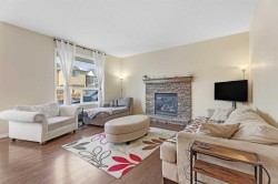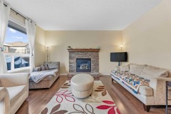 Welcome to an exceptional family residence in the premier lake community of Auburn Bay — where lifestyle, space, and long-term value converge. Offering over 3,000 square feet of professionally developed living space, this meticulously maintained two-storey delivers the size, layout, and upgrades discerning buyers expect. Built by Cedar Glen for the original owner, the home was thoughtfully designed for both everyday family function and elevated entertaining. The main level showcases rich hardwood flooring, expansive living and dining areas, a private home office, and a beautifully appointed kitchen featuring dark cabinetry, stainless steel appliances, and seamless flow to the rear deck and landscaped backyard. A warm, mantel fireplace anchors the living space, creating a refined yet comfortable atmosphere. Upstairs, a generous bonus room provides separation for family living, while the spacious primary retreat offers a 4-piece ensuite and excellent closet space. Two additional bedrooms and convenient upper-floor laundry complete the level. The fully developed lower level was intentionally designed as an entertainment destination — featuring a custom-built bar, integrated entertainment centre, a fourth bedroom, full bath, and dedicated play space. This level adds meaningful, functional square footage rarely found at this price point. Major capital improvements enhance both comfort and buyer confidence: New hot water tank, New central air conditioning. The insulated and drywalled double attached garage further reinforces the home’s turnkey condition. Situated just minutes from the South Health Campus, the amenities of Seton, top-rated schools, and Auburn Bay’s private lake access, extensive walking paths, and year-round recreation — this is more than a home; it is a long-term lifestyle investment. A rare opportunity to secure substantial square footage, recent mechanical upgrades, and lake-community living in one of Calgary’s most desirable southeast neighborhoods.