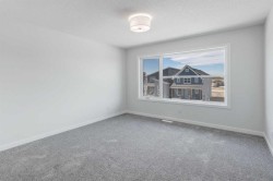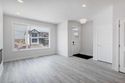 Introducing the COHEN: an amazing, BRAND NEW attached home by EXCEL HOMES offering 1733 SF above grade of upgraded luxury! Nestled in the vibrant Northeast community of Livingston. Step into a life of luxury and convenience with this stunning residence, where every detail has been meticulously crafted for comfort and style. Enjoy the benefits of living in an established neighborhood that brings a plethora of amenities right to your doorstep, along with swift access to major highways. The COHEN offers a sprawling 1733 square feet of thoughtfully designed living space, perfect for both families and entertaining. The open floor plan, complemented by neutral designer tones, creates a welcoming atmosphere that is both elegant and comfortable. The chef-quality kitchen stands as the heart of the home, equipped with ceiling-height cabinets, pot/pan drawers, and upgraded stainless steel appliances, including chimney fan and built-in microwave. The expansive engineered stone countertops, a large island with seating, and a convenient pantry make it a dream kitchen for those who love to cook and entertain. The main floor also features versatile luxury vinyl plank flooring. Uniquely ON THE MAIN FLOOR, you'll find a BEDROOM & FULL 4 PCE BATHROOM. Ascend to the second level where leisure meets luxury in the large central bonus room — ideal for movie nights and family gatherings. The primary bedroom is a true retreat, boasting a walk-in closet and a spa-like ensuite with stone vanity tops. Additionally, two more generously sized bedrooms provide ample space and easy access to the main bathroom. The convenience continues with a laundry room (w/folding counter), strategically located on the same floor. The possibilities extend into the undeveloped basement that has separate SEPARATE SIDE ENTY & ROUGH IN'S FOR 2 BEDROOM LEGAL SUITE (with city permits & approvals)... the utilities are tucked away for easy development. Step outside to a southeast-facing backyard that's perfect for relaxation and outdoor activities. You'll love the convenience of the REAR DOUBLE DETACHED GARAGE (not yet built - seasonal item)! Don't miss the chance to own this never-lived-in gem with quick possession available. Experience the blend of luxury, comfort, and convenience in Livingston—welcome to your new dream home at the COHEN. This home will include front & back yard sod. Also includes complete interior sprinkler system to main and upper floors!