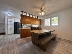 Nestled in one of Camrose’s most desired areas, you will find this charming 4 bedroom, 3 bathroom 1,531 sq ft home. The expensive upgrades have already been taken care of for you, time to relax! Throughout this home you will take note and appreciate the newly installed high efficiency furnace, hot water on demand, air conditioning, vinyl windows, kitchen appliances including washer & dryer and overhead garage door. As you first step foot into this lovely abode, you're immediately greeted by an expansive grand entrance, this area is not just an entrance; it's a multifunctional space designed for convenience. It acts as a mud room, storage area w/ double closet, access to the attached garage, a handy 3 piece bathroom and your laundry tucked nicely into a convenient space. The kitchen is considered the heart of the home, where culinary magic happens and memories are made. The abundance of kitchen cabinetry helps you keep well-organized enhancing functionality to create a fantastic cooking atmosphere. After enjoying meals in your appointed dining area, retreat to the living room—a space for relaxation and connection where you can unwind and catch up with family & friends. Cozy up to the brick facing - wood burning fireplace, oh the winters months will be marvelous. The main floor has 3 bedrooms, in which the primary bedroom has its own beautiful 2 piece bathroom. Sitting central in the home is a large 3 piece bathroom with a generous countertop providing plenty of room for all the necessities . To the lower level, there is a family room along with a living room with a 2nd wood burning fireplace, the 4th bedroom and never-ending storage. We all love options, you have your plumbing roughed in for a 4th bathroom on the lower level. Outside, stow away all your extras with a newly built oversized shed, there is room to park your RV, and a great size lot to enjoy the great outdoors. This home is waiting for you!