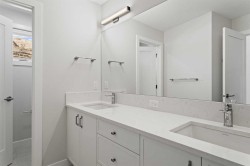 Discover luxury mountain living at its finest in these exquisite 3-bedroom, 2.5-bath retreat, in Stewart Creek's newest multi-family development, The Meadows at Stewart Creek. Situated just under 60 minutes from YYC these 2.5 - storey Chalet townhouses boast a unique floor plan with 15ft vaulted ceilings, architectural wing walls giving the units additional windows, dedicated balconies creating an open and airy ambiance. The upper living areas accented by built-in desk/workspaces, gas fireplaces in the living area to set a serene tone, dedicated dining area, and well-appointed kitchens which boast quartz counters, stainless steel appliances and spacious eating bar. After a day on the hiking and biking trails or at the Stewart Creek Golf course storage is easily accessible in 1.5-car garage with large, heated gear/storage space. Photos are from show suite of the same floor plan in the Developer's previous project. Possession Early December