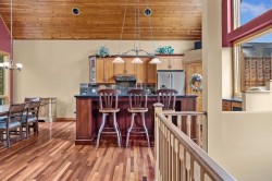 214 Eagle Point is an extraordinary mountain sanctuary perched on the sunny side of Canmore—where timeless alpine charm meets refined modern living.From the moment you step inside, the home welcomes you with a soaring great room anchored by a magnificent stone fireplace, rich exotic hardwood floors, and an abundance of natural light. Expansive windows draw the eye outward to breathtaking, unobstructed views of the Rocky Mountains, creating a seamless connection between the beauty indoors and the spectacular landscape beyond.At the heart of the home lies a gourmet kitchen designed for both culinary creativity and social gatherings, all framed by panoramic mountain scenery.Step outside onto the gated south-facing deck, an exceptional vantage point for soaking up sunshine and admiring the rugged peaks. Whether you're enjoying your morning coffee or hosting friends at sunset, this outdoor living space elevates every moment.The rear yard is a private, tranquil oasis backing onto an environmental reserve—lush, evergreen, and alive with nature. It’s an idyllic setting for quiet relaxation, alfresco dining, or unwinding in the hot tub beneath a sky full of stars.More than a home, 214 Eagle Point offers a lifestyle shaped by comfort, style, and the unparalleled beauty of Canmore’s natural surroundings. From fireside evenings to forest-side mornings, every day here feels like a retreat.