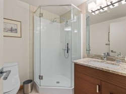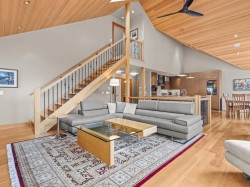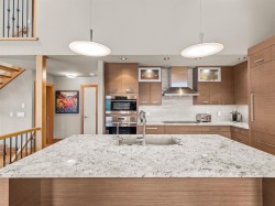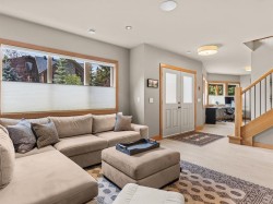 Perfectly positioned in South Canmore, this contemporary 4-bedroom, 4-bathroom duplex property combines timeless craftsmanship with a modern mountain aesthetic, offering refined design and everyday functionality in an exceptional location. From the moment you enter, every detail reflects quality. Site-finished white oak flooring, custom solid oak, open-riser stairs, and soaring clear fir vaulted ceilings set a warm and sophisticated tone. At the heart of the main level is a custom walnut kitchen designed for both daily living and entertaining. A spacious granite island anchors the space, while top-tier Sub-Zero and Wolf appliances, including a Sub-Zero wine and beverage fridge, Wolf induction cooktop, wall oven, and steam oven make this a chef’s dream. Practical luxury is everywhere: an Everhot water tap for instant tea, a Kinetico soft water and filtration system, a discreet built-in Hailo step ladder tucked into the base cabinetry, and thoughtful storage solutions that elevate functionality without compromising beauty.The dining area, framed by vaulted ceilings and large windows, feels open yet intimate, while the great room showcases a modern concrete gas fireplace and floor-to-ceiling windows that frame the mountains perfectly. Step outside onto the expansive deck, perfect for morning coffee, evening wine, or hosting guests against a backdrop of mountain views.The home features two beautiful and spacious primary retreats. The main floor suite is filled with natural light and has a stylish walk-in closet. It also offers a spa-inspired ensuite with dual sinks, a steam shower, heated towel bar, and a Toto toilet with bidet seat. Head up the stunning, open riser stairs to the second primary suite which offers a similar luxurious ensuite, with the addition of a deep soaker tub. On the ground level, a cozy family room offers the ideal spot for movie nights or game days, while a bright home office makes working from home effortless. A well-designed laundry room with abundant cabinetry, counter space, and a drying cabinet ensures that even chores feel streamlined. Completing this level are a fourth bedroom, a fourth full bath, and an epoxy-finished, heated double garage with ample space for all your mountain gear.Additional features such as new air conditioning, Vacuflow, and thoughtful built-ins throughout the home further enhance comfort and convenience. And outside your door, South Canmore’s best amenities await...Main Street, Spring Creek, Bridgette Bar and vibrant local cafés and shops are all just a short stroll away.