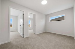 Located in the established and family-friendly community of Bridgeport in Chestermere, 117 Bridgeport Gate offers a thoughtfully designed duplex that combines flexibility, functionality, and future potential. Situated on a quiet street close to parks, schools, and everyday amenities, this home is ideal for families, multi-generational living, or buyers seeking additional space with room to grow.The main floor features a bright and open layout with generous natural light flowing through the living and dining areas. The kitchen is well positioned for both everyday use and entertaining, offering ample cabinetry and counter space. A standout feature of this level is the main-floor bedroom and full bathroom, providing excellent versatility for guests, extended family, or a private home office.Upstairs, the layout is designed with family living in mind. The spacious primary bedroom includes a walk-in closet and a private ensuite, creating a comfortable retreat at the end of the day. Two additional bedrooms share a full bathroom, making this level practical and well suited for children or guests. A convenient upper-level laundry area located in the hallway adds everyday ease. Completing this level is a welcoming family room, offering additional living space perfect for movie nights, a play area, or a quiet lounge.The basement is currently undeveloped but offers approximately 800 additional square feet of potential living space. With a separate exterior entrance, the lower level presents exciting possibilities for future development—whether you envision a recreation area, additional bedrooms, or extended family accommodations (subject to local approvals).Outside, the property is completed by a detached double garage, providing secure parking and additional storage space. The backyard area offers room to enjoy the outdoors while maintaining a manageable footprint.With its flexible floor plan, main-floor bedroom, upper bonus space, and future basement potential, 117 Bridgeport Gate presents an excellent opportunity to own a well-designed home in a desirable Chestermere neighbourhood just minutes from Calgary. Move-in ready with room to customize, this property offers both comfort today and possibilities for tomorrow.