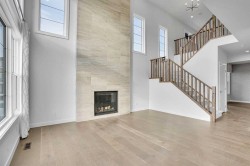 An Exquisite Former Show Home on a Premier Corner Lot in ChelseaWelcome to 379 Chelsea Passage, a meticulously curated former show home poised on a premium corner lot in the sought-after community of Chestermere. This stunning 3-bedroom, 2.5-bathroom residence offers privacy, prestige, and unparalleled design.Upon entry, the home captivates with a FOYAR AREA , DEN LINNG AREA AND breathtaking open-to-below LIVING room. This architectural centerpiece, framed by expansive windows, inundates the main floor with an abundance of natural light, creating an atmosphere of sophisticated airiness. The home's nucleus is the immaculately updated gourmet kitchen, designed for both culinary excellence and social engagement.Functionality converges with luxury in the oversized triple garage and the professionally landscaped yard, which transitions seamlessly into a serene green space—your private oasis . Upstairs, the primary suite provides a tranquil sanctuary with its private 5 piece ensuite, complemented by two additional spacious bedrooms additional 5 piece bathroom and huge bonus area . This property represents a rare synthesis of sophisticated design, prime location, and exceptional quality. VERY WELL MAINTAINED AND KEPT CLEAN BY THE BUILDERS , THIS HOME OFFERS EVERYTHING YOUR FAMILY REQUIRES TO CALL THIS HOME . MUST BE SEEN AND APPERCIATED