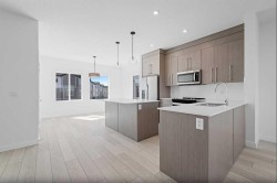 Step into elevated living with this stunning 4-bedroom townhome in the heart of Chelsea—a flourishing, family-friendly community full of energy and charm. Surrounded by scenic walking paths, playgrounds, and convenient shopping, this home perfectly blends lifestyle and location.Inside, you'll find spacious elegance and modern comfort, including 4 bedrooms, 2.5 bathrooms, and an attached double heated garage—perfect for those chilly Alberta winters. The main floor features a flexible bedroom, ideal for guests, a home office, or even a creative studio space.Every detail has been carefully crafted with premium finishes: enjoy the beauty of Vinyl Plank flooring, soaring ceilings, and designer touches throughout. The chef-inspired kitchen is a true showstopper, with full-height soft-close cabinetry, quartz countertops, a sleek stainless steel appliance package, and a handy pantry. Whether you're hosting guests at the eat-up bar or cooking weeknight dinners, this kitchen is made to impress.Upstairs, the primary suite offers a peaceful retreat with a generous walk-in closet and a luxurious 4-piece ensuite. Two more spacious bedrooms, a 4-piece main bathroom, and convenient upper-floor laundry round out the upper level—designed for everyday ease.Bright, beautifully finished, and move-in ready, this townhome is your chance to experience the sophisticated, hassle-free lifestyle that only Truman can deliver.Don't miss out—make this exceptional home yours today!