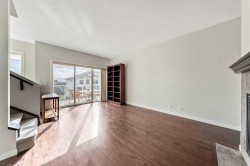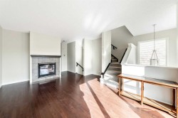 Welcome Home!!! This 1579 sq ft, Calbridge built townhome is nestled in the sought after community of Sunset Ridge with amazing views of the stunning valley covered with lush forests. When you step into this home you can tell it’s been well taken care of. We start with a large foyer to greet your guests, as you look above to a beautiful high vaulted, brightly lit ceiling. There is plenty of space to wipe your dogs paws with access to the attached garage. Up one flight and you have beautiful hardwood floors that flow throughout the entire main floor. A great open floor plan with a large kitchen and living room area. The kitchen has plenty of counter and cupboard space, a pantry, stainless steel appliances, and gorgeous granite countertops. From the kitchen/dining room you can step out onto the deck where you back onto a green space with no neighbours behind! Great place to BBQ! The living room has tons of space to host friends, a cozy fireplace, with large sliding glass windows which leads to an impressive front patio to take in the views of the valley as you have your morning coffee. The main floor is capped off with a tiled powder room. The upstairs has 3 bedrooms, the large master bedroom has a 3 piece ensuite, a walk in closet and large windows to take the views in. The laundry room is conveniently placed upstairs so you don't have to carry your clothes all the way downstairs. There is a 4 piece bathroom which finishes off the upper floor. The home has a great double attached tandem garage. The hot water tank was just recently replaced. Amazing walking paths to take the dogs out, and close to schools, shopping and is situated perfectly to get out of town, a 45 minute drive to Canmore/Banff. This place is perfect for a family, investor, or a first time home buyer! Don't miss out!!