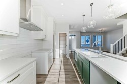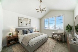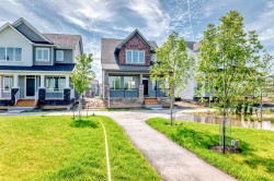 Step into The Emerson, a porch-front home that blends standout curb appeal with the kind of layout that simply works for everyday family life. The showstopping 232 sq ft covered front porch creates the perfect indoor/outdoor extension—ideal for morning coffee, evening chats with neighbours, or a practical “landing zone” for boots and outdoor gear. Even better, the home’s park-facing location delivers unobstructed views and a streetscape that feels like an oasis right outside your front steps. Inside, the open-concept main floor is designed for connection, with a central kitchen anchoring bright living and dining spaces that flex with your lifestyle—whether it’s family movie night, homework at the table, or hosting friends. Oversized front-and-back windows flood the home with natural light all day long, creating an airy, welcoming feel from the moment you enter. The kitchen is beautifully appointed with full-height upper cabinets, two-tone cabinetry, quartz countertops, soft-close doors, an upgraded chimney-style hood fan, and a built-in microwave, plus a gas line to the range for those who love to cook. Function meets convenience with a rear mudroom, a walk-in pantry, and main floor laundry—perfect for multitasking and keeping day-to-day routines running smoothly. Upstairs, the vaulted owner’s suite offers a true retreat, complete with a spacious walk-in closet and a spa-inspired 5-piece ensuite. A thoughtful winged bedroom design adds privacy for family members or guests, and upgraded main floor railing adds to the home’s polished look. And the feature that truly sets this property apart: a triple detached garage with a full driveway and parking pad, offering parking for up to 6 vehicles—a rare and valuable setup. Add in a gas line for the BBQ, park-side living, and a floor plan built for real life, and you’ve found a home that checks every box. Limited opportunities like this don’t come along often—don’t miss it. Living in Vista Crossing means enjoying the best of both worlds: the convenience of city living just a short drive from Calgary, paired with the charm and slower pace of small-town life in Crossfield. This thoughtfully planned community fosters a strong sense of belonging and connection, where neighbours look out for one another and life revolves around family. Vista Crossing offers endless opportunities for recreation with its 4 kms of walking trails, 5 acres of protected wetlands, 20 acres of green spaces, and a community garden. Sports enthusiasts will love the mini soccer field, outdoor hockey rink, skateboard park, and sports fields.