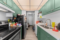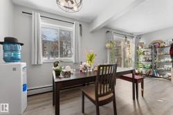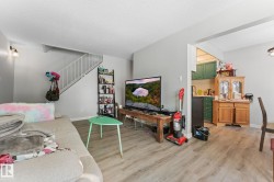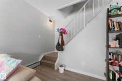 Welcome to this stylish and renovated 2-bedroom, 1-bath townhouse-style condo in the Brewery District, just minutes from downtown, MacEwan University, Rogers Place, public transit (buses and the new LRT stop), plus shopping and dining options. Offering 880+ sq ft over two levels, this home provides carpet-free living and a covered balcony with plenty of outdoor space and tranquil views of the tree-lined street. Both bedrooms are spacious, perfect for roommates or a small family. Plenty of storage is available with an in-suite storage room and generous closets throughout. Low condo fees include everything except electricity. The well-managed building features a new roof (2013), balcony surfaces (2012), boiler (2023), and triple-pane windows and balcony door (2023) for added peace of mind. Ideal for professionals, students, or investors seeking convenience and modern living in a vibrant, well-connected community. Currently rented for $1500 monthly.