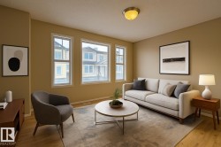 This well-maintained 3-bedroom with attached garage, two-storey townhouse offers low condo fees, spacious living, and is located within walking distance to Klarvatten Lake. Step into a bright and inviting living room filled with natural light. The large kitchen features a stylish movable island and opens to a private deck that backs onto green space — perfect for relaxing or entertaining. A convenient 2-piece bathroom completes the main floor. Upstairs, you’ll find three generously sized bedrooms, including a primary bedroom with a large closet, and a full 4-piece bathroom. The lower level offers a finished and large laundry room and an oversized single garage with bonus storage room. Some photos in this listing have been virtually staged to help showcase the potential of the space. The unit has recently been painted, offering a clean and refreshed appearance. Located close to parks, schools, public transit, shopping, and offering a quick commute to the military base, downtown, and the Henday.