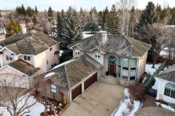 Welcome to this impeccable 3036 sq ft renovated 2-storey in prestigious Wedgewood Heights! Perfectly positioned on a quiet cul-de-sac and backing a serene ravine trail, this home offers elegance and quality. Stunning engineered hardwood and a showstopping staircase invoke a grand impression. A bright den with bay windows creates the ideal home office, while board and batten accents highlight the breathtaking open-to-above living room with expansive windows and cozy fireplace. The kitchen features a large island, quality cabinetry, farmhouse sink, quartz counters, and an east-facing breakfast nook. Step outside to a Trex deck overlooking the beautiful yard. A formal dining room, main flr laundry and powder room complete this level. Upstairs offers a luxurious primary retreat with 5-piece ensuite, w/i closet and private balcony, plus two bedrooms and a 4-piece bath. The bsmt includes a rec room, gym, two bedrooms, and a 3-piece bath with sauna. All just steps from park and ravine trail. Amazing opportunity!