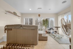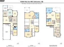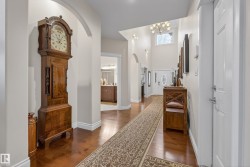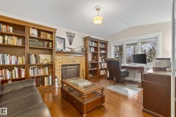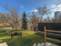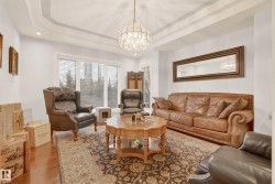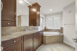 Ravine Property located in Groat Estates offers park like living doorsteps to Downtown. Custom built 5 bedroom, 4 bathroom WALKOUT BASEMENT home features a QUADRUPLE floor-heated ATTACHED tandem GARAGE. SOUTH facing BACKYARD. Formal office with built in shelving, raw brick facing gas fireplace. Huge dining room, living room with a gas fireplace. Both spaces offer 24 foot cathedral ceilings. Chef’s kitchen with professional appliances package, granite countertops, two sinks, 3 ovens, wet bar, and more. Three season power screened covered patio that continues to exposed deck. Upper level presents three bedrooms, laundry room and breathtaking views from the covered balcony. FULLY FINISHED walk-out basement with family room, gas fireplace, gym area, two bedrooms, bathroom, wet bar, humidity and temperature controlled HOT TUB ROOM with sliding patio doors to lower deck and large storage space. OVERSIZED DRIVEWAY. Sub-basement storage and shed. Minutes to Rogers Arena & restaurants.