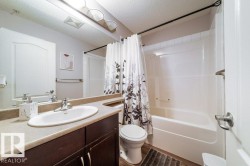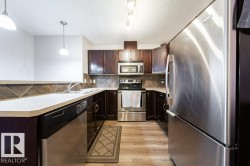 This well-maintained 2 bedroom, 2 full bathroom condo offers incredible value and convenience. Featuring an open-concept layout, vinyl plank flooring through-out, the kitchen is equipped with an island and includes stainless steal appliances — perfect for easy entertaining. The bright central living room opens to a northeast-facing patio through sliding doors, providing a great space to relax. The spacious primary bedroom boasts a walk-in closet and a private 4-piece ensuite. A generous second bedroom is ideal for a home office or guest room, complemented by an additional 4-piece bathroom. Enjoy the convenience of in-suite laundry with a stacking washer and dryer. Situated on the main floor — no stairs or elevators needed — this unit also comes with a heated, titled underground parking stall. Building amenities include an exercise room and a social room. Why rent when you can own this fantastic home.