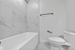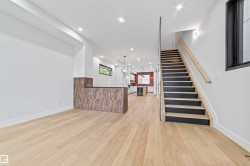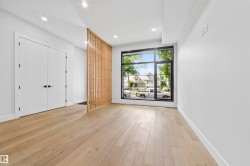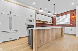 Central living meets modern luxury in this custom-built two-storey, offering nearly 2,000 sq. ft. plus a fully finished basement with wet bar. Soaring 10’ main floor ceilings, 9’ upstairs, and expansive triple-pane windows fill the home with natural light. The chef’s kitchen features a gas cooktop, quartz counters, custom cabinetry, and bold brick backsplash that makes a statement. Enjoy designer details throughout: 8’ doors, engineered hardwood, a spa-inspired ensuite with oversized tiled shower, and a stunning tiled bathroom. Built with striking curb appeal — acrylic stucco and metal accents — this home is both elegant and enduring. Every space is thoughtfully designed, from custom closets to the open-concept living areas perfect for entertaining. Steps to the Ravine, West Block, and minutes from Downtown, this is your chance to own in one of Edmonton’s most coveted neighbourhoods.