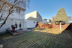 Attention in sought after Millbourne Green is this wonderful 4 bedroom, 2 bath, finished basement, and double garage home, which has been cared for by long-time owner. An inviting Air-Conditioned two-story townhouse with a spacious main floor perfect for entertaining. Bathed in natural light, creating a warm, welcoming atmosphere. The main floor boasts an updated kitchen with a tile backsplash, alongside a spacious LR with a cozy wood-burning fireplace that overlooks a large backyard. A half-bath and roomy foyer round out the first floor. Upstairs, you'll find four bedrooms, and a full bathroom with a jetted tub. The basement offers a large family room ready to have flooring installed and plenty of storage. The large back yard offers a deck, a gas line hook-up, and is perfect for relaxation. Conveniently located near trails, schools, and public transit, this home is ideal for comfortable living with easy access to local amenities, Whitemud, and major arterial roads. A lovely home in a wonderful location.